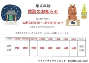 年末年始休診:令和7年12月28日(日)~令和8年1月4日(日)